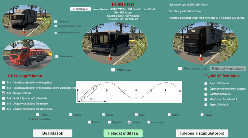 Akkreditált járművezetési veszélyhelyzetek gyakorlására alkalmas szimulátor